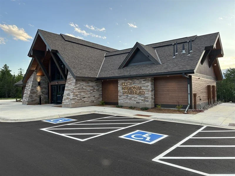 The Ely Regional Trailhead is a modern, four-season facility located at the western entrance of Ely, Minnesota. Serving as a premier hub for outdoor recreation. This new facility connects major trails like the Mesabi Trail, Taconite Snowmobile Trail, and Prospector Loop ATV Trail. It offers ADA-accessible restrooms, changing areas, informational kiosks, and charging stations.